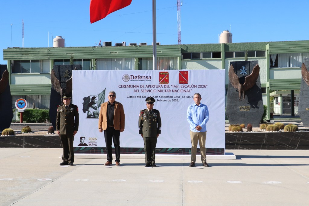 La Paz, BCS, a 1 de marzo de 2026.- El subsecretario de Enlace Legislativo y Municipal, José María Avilés Castro, asistió en representación del gobernador del estado, Víctor Manuel Castro Cosío, a la Ceremonia de Apertura del Primer Escalón 2026 del Servicio Militar Nacional (SMN),acto encabezado por el comandante de la Tercera Zona Militar, general José Manuel AlcántaraGonzález.