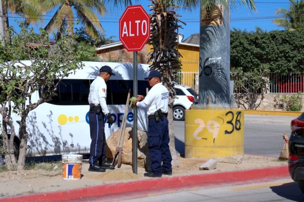 Los Cabos, Baja California Sur, a 11 de marzo de 2026.– El XV Ayuntamiento de Los Cabos, a través de la Dirección General de Seguridad Pública, Policía Preventiva y Tránsito Municipal, puso en marcha un programa de instalación de señalética en vialidades de mayor flujo vehicular.