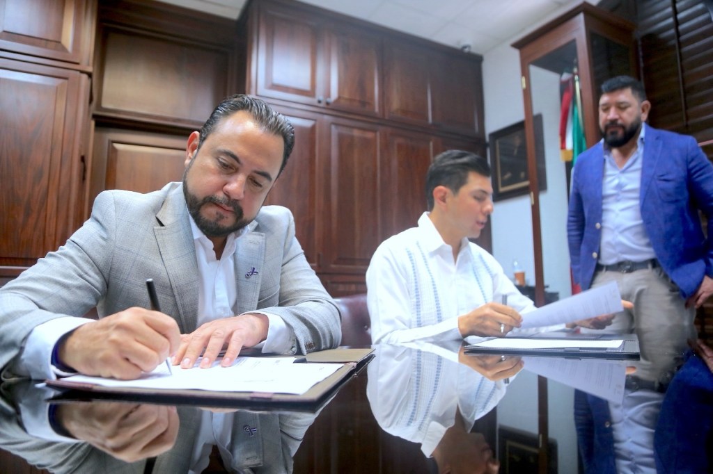 Durante la firma de la carta de intención de hermanamiento, el alcalde Christian Agúndez estuvo acompañado por el regidor VIII Celestino Atienzon Beltrán; el jefe de Gabinete, Guillermo Sánchez Flores; el secretario técnico, Salvador Castellanos; y el director municipal de Relaciones Públicas, Víctor Montaño Gaytán.