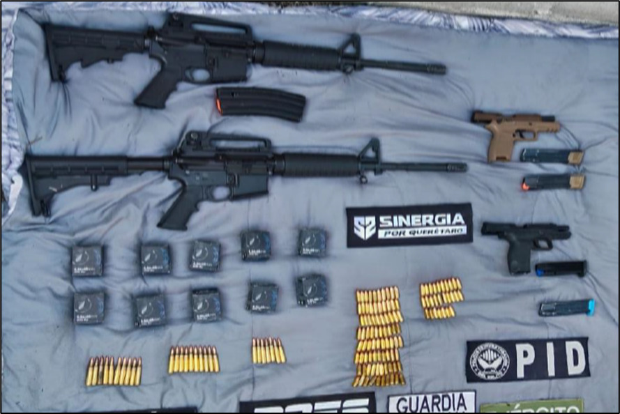 Querétaro, Qro., a 15 de marzo de 2026.- Las comandancias de la XII Región Militar y 17/a. Zona Militar, hacen del conocimiento a la opinión pública que en cumplimiento a lo establecido en la Estrategia Nacional de Seguridad Pública, el 14 de marzo del presente año, integrantes de la Guardia Nacional y del Ejército Mexicano brindaron apoyo a las autoridades de los tres órdenes de gobierno, para la ejecución de dos Órdenes Técnicas de Investigación en los municipios de Querétaro y Corregidora, Qro., donde aseguraron lo siguiente: