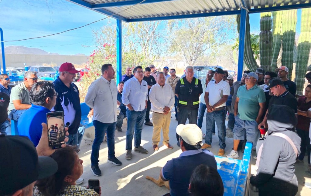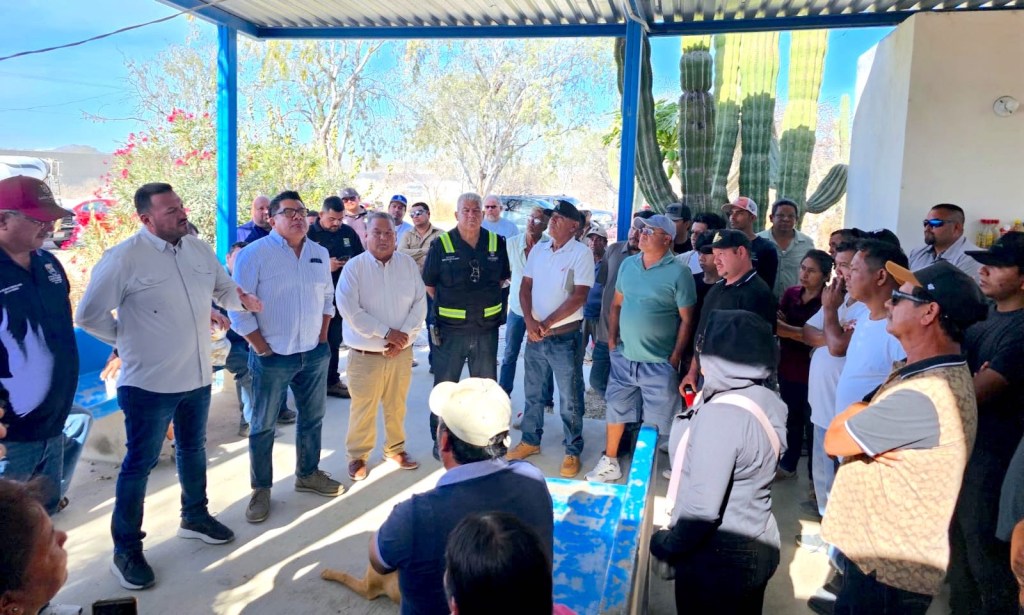 Los Cabos, Baja California Sur, a 11 de abril de 2026.– El secretario general del XV Ayuntamiento de Los Cabos, Alberto Rentería Santana, sostuvo reunión con transportistas de agua en el sitio donde se ubica el Pozo Estrella, en conjunto con el director general del OOMSAPAS Los Cabos, Ramón Rubio Apodaca, con el objetivo de atender la situación derivada del cierre de esta fuente de abastecimiento por parte de CONAGUA.