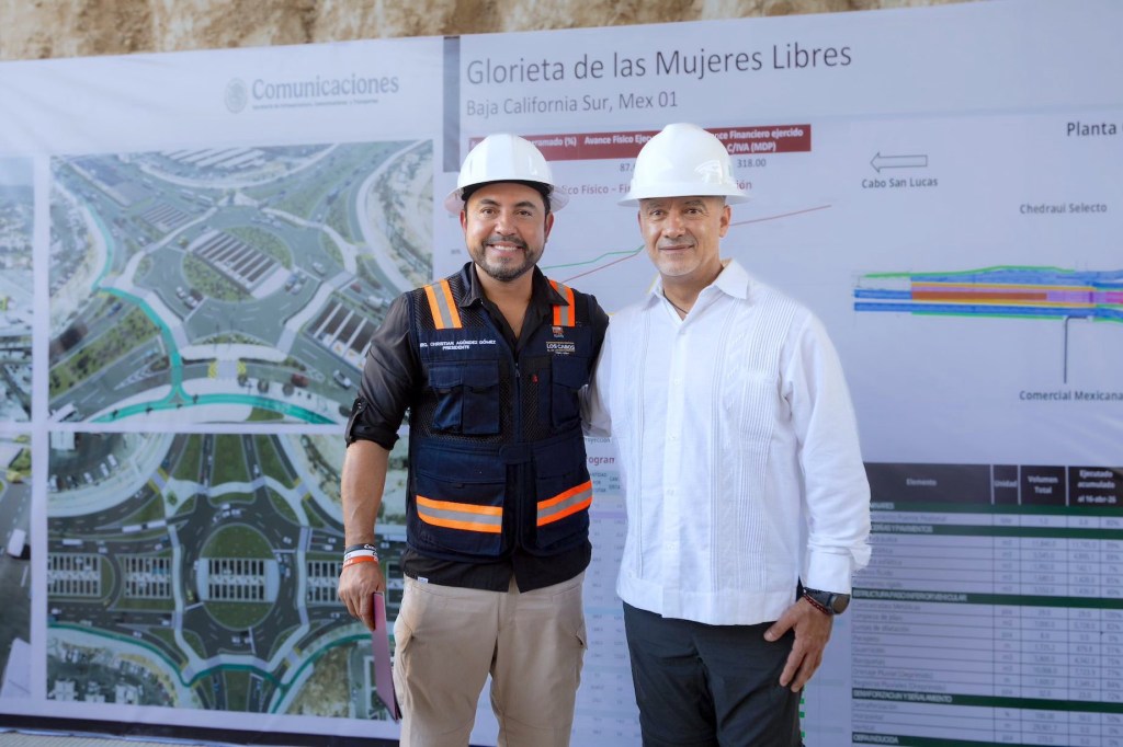 Los Cabos, Baja California Sur, 16 de abril de 2026.- «Estamos muy agradecidos por esta magna obra, confiamos en que este proyecto sea una realidad probablemente este 30 de abril”, anunció el presidente municipal de Los Cabos Christian Agúndez Gómez, durante el recorrido de supervisión técnica en el paso a desnivel ubicado en la zona de la Glorieta de las Mujeres Libres, al que acudió junto al titular de la Secretariade Infraestructura, Comunicaciones y Transportes (SICT), Jesús Antonio Esteva Medina y el gobernador de Baja California Sur Víctor Manuel Castro Cosío.