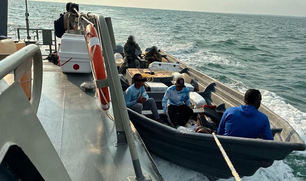 Esta acción se llevó a cabo tras realizar el seguimiento mediante el sistema de vigilancia marítima, donde se detectó una embarcación con tres motores fuera de borda que realizaba movimientos no propios de la navegación civil, por lo cual, de inmediato se ordenó el despliegue de unidades de superficie y aeronavales para verificar su situación e interceptación en altamar.