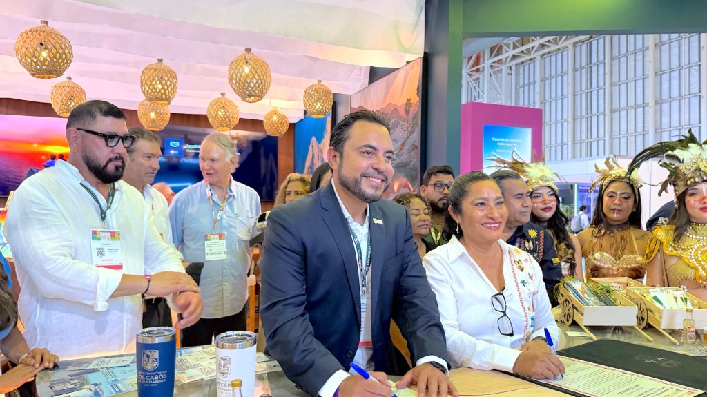 Durante las actividades del Tianguis Turístico, el presidente municipal también sostuvo un acercamiento con la síndica del Ayuntamiento de Palenque, Chiapas, Guadalupe Cortés Jiménez, con quien dialogó sobre la posibilidad de impulsar un futuro hermanamiento entre Los Cabos y dicha ciudad.